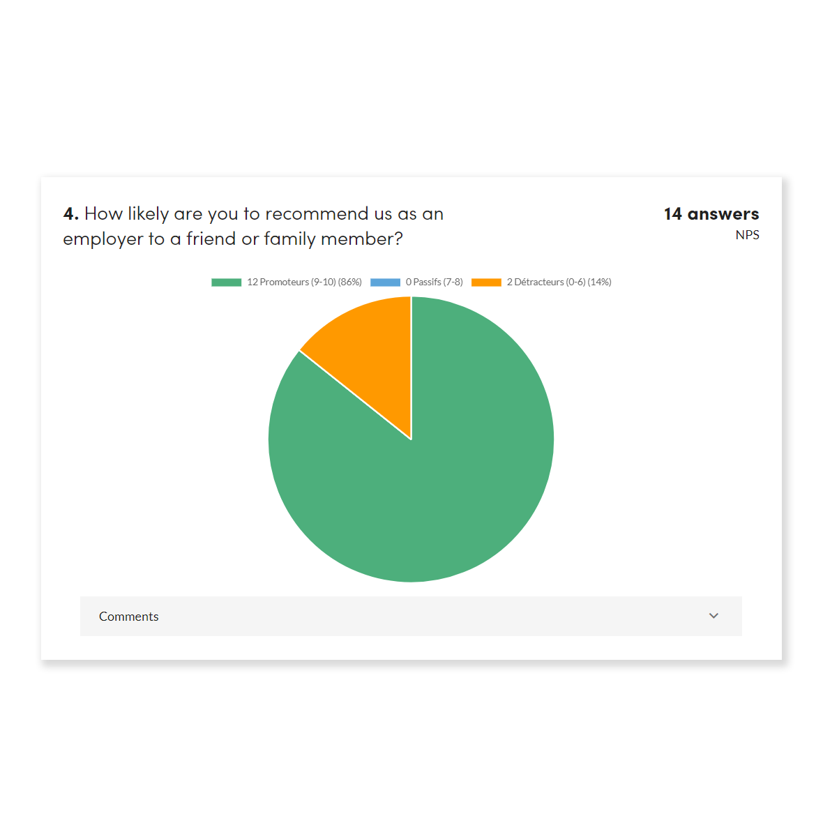 After sending personalized and automated surveys, rely on the results to make informed decisions. Whether it’s an event date, a gift idea, or a choice of activity, regularly question your teams to set up winning conditions. This way, you can make the best decision based on the opinion of the majority! A team is made up of people with differing opinions and it’s important to take the time to hear from your employees at work!
