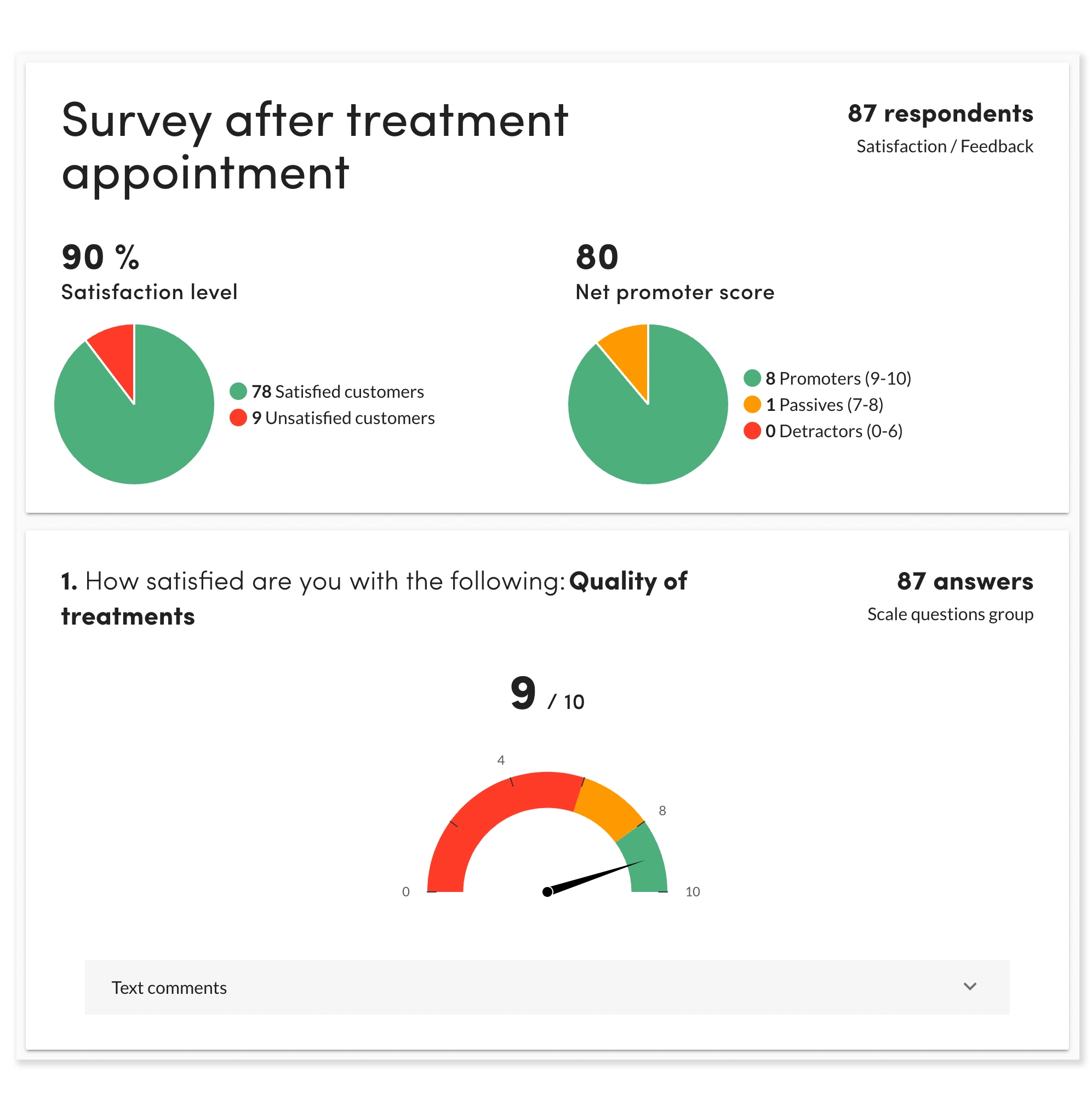 Following your surveys, our NPS software, which is especially suitable for medical clinics, automatically converts your patients’ responses into centralized performance indicators in your clinic’s dashboard. These metrics will tell you the overall satisfaction of your patient as well as what needs to be improved in terms of your patient experience. This is a must for ensuring the loyalty and commitment of your patient!