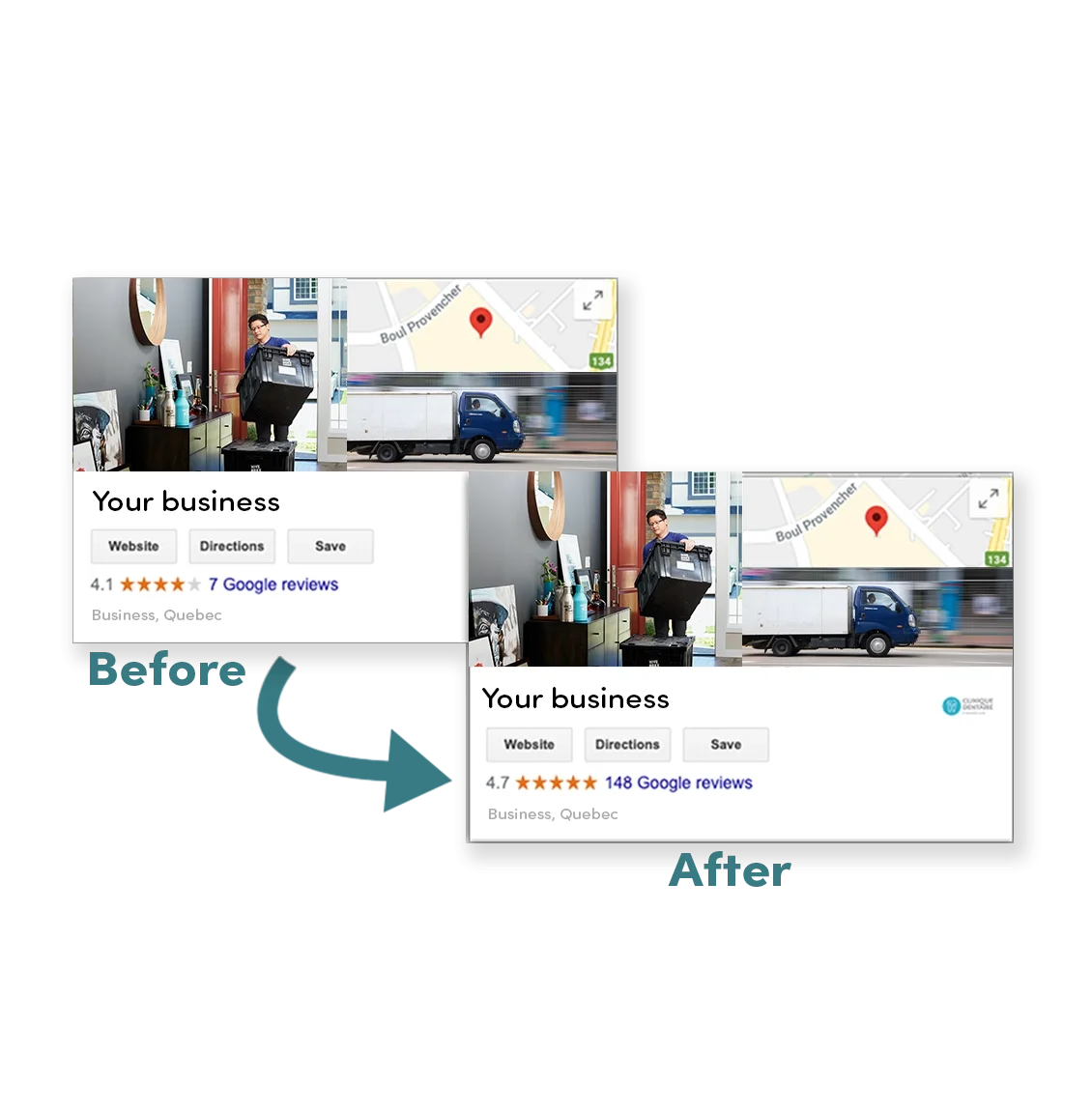 Take advantage of our connection with ServiCentre to attract new customers to your store. Our solution increases your monthly Google reviews by an average of three to ten times. At the end of each completed survey, InputKit automatically prompts your satisfied customers to leave you a positive review online. With InputKit, be sure to target exclusively your ambassadors to improve your online reputation. A high volume of Google reviews will increase your visibility on search engines and result in better acquisition of new customers!