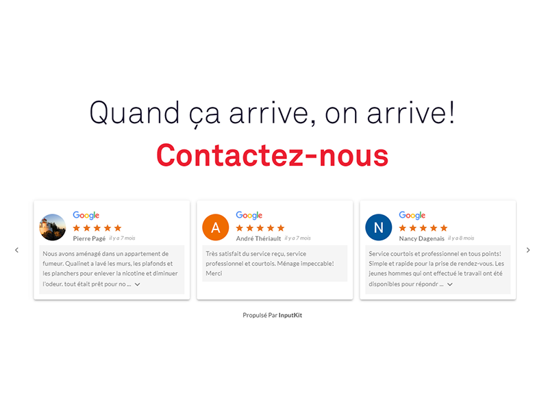 Une solution d’amélioration des avis clients comme InputKit peut vous aider à récolter les avis positifs de vos clients satisfaits afin de montrer à vos prospects que vous êtes digne de confiance. De plus, notre solution permet de centraliser vos rétroactions positives dans une vitrine (widget) sur la page d’accueil de votre site web pour que vos internautes puissent rapidement repérer vos avis positifs. Il s’agit d’une excellente manière de montrer à vos prospects que vous avez le bien-être de votre clientèle à cœur!