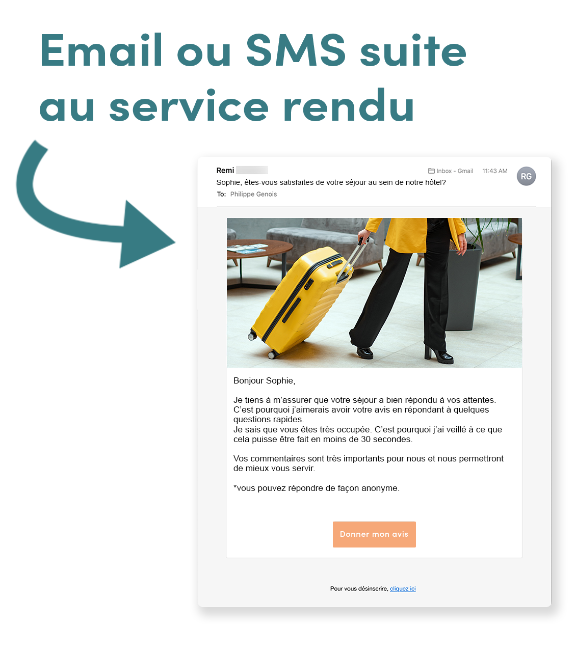 Saviez-vous que les entreprises possédant de nombreux avis en ligne génèrent en moyenne 54% plus de revenus? Bénéficiez de notre logiciel automatisé de satisfaction client pour hôtel : améliorez votre chiffre d’affaires en attirant de nouveaux clients au sein de vos hôtels!